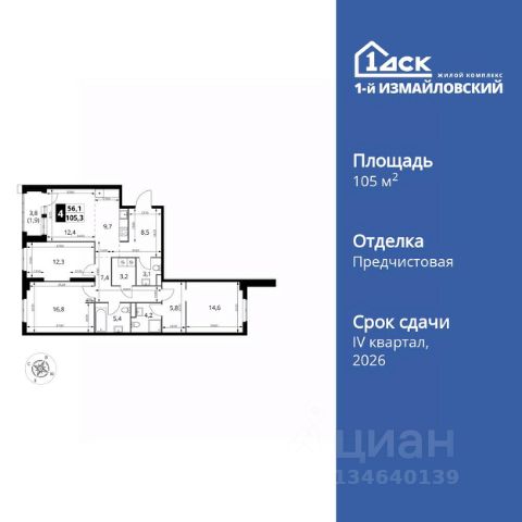 Продаётся 3-комн. квартира площадью 71,1 кв.м на 10 этаже 30 этажного дома (Корпус 1.3, Секция 3) проекта ПИК 2-й Иртышский. Светлый просторный подъезд на уровне земли, функциональная планировка, большие окна, c отделкой. "2-й Иртышский" возводится на востоке Москвы, между тремя станциями метро "Щелковская", "Черкизовская" и "Бульвар Рокоссовского". Проект включает жилые корпуса с индивидуальной архитектурой, школу и детский сад. Проект состоит из зданий разной высоты и разной по характеру архитектуры. Узнаваемой доминантой квартала станет башня из стекла и металла, напоминающая водопад. Квартал расположен в окружении нескольких знаковых рекреационных зон столицы. Вам понадобится всего несколько минут, чтобы оказаться в атмосфере спокойствия и слияния с природой. Всего 15 минут пешком, и вы в "Сиреневом саду", а дорога до национального парка "Лосиный остров" или Гольяновского пруда займёт 6 минут на авто. До Черкизовского детского парка и "Усадьбы Измайлово" можно доехать за 15 минут. До станции "Черкизовская" можно дойти пешком за 25 минут или доехать на общественном транспорте за 20. Дорога до станций "Бульвар Рокоссовского" и "Щёлковской" займёт 25 минут на общественном транспорте. Автомобилисты оценят удобные выезды на Щёлковское шоссе и СВХ. Путь до МКАД займет около 14 минут, до ТТК - 20. Артикул 961741 Продам квартиру в районе Гольяново в Москве.