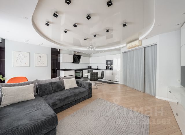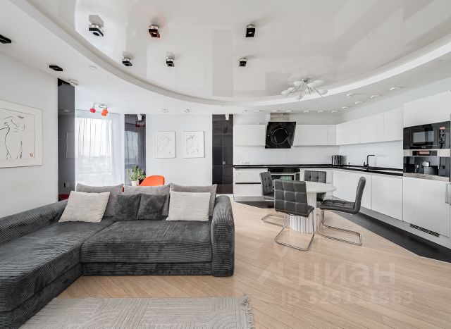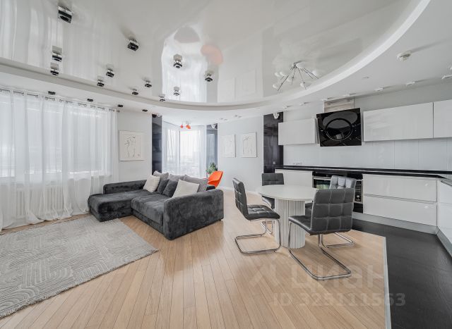 Квартира площадью 84,1 м² расположена на 14 этаже 17-этажного дома. Из панорамных окон открываются виды на три стороны света, в квартире выполнен современный дизайнерский ремонт в светлых тонах с использованием качественных материалов. Интерьер продуман до мелочей — гармоничный, функциональный и стильный