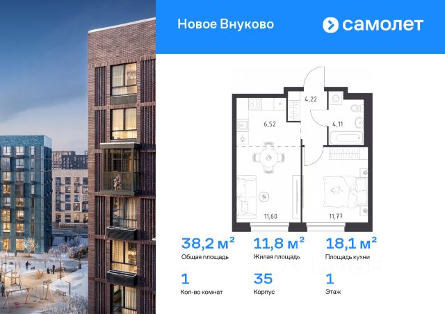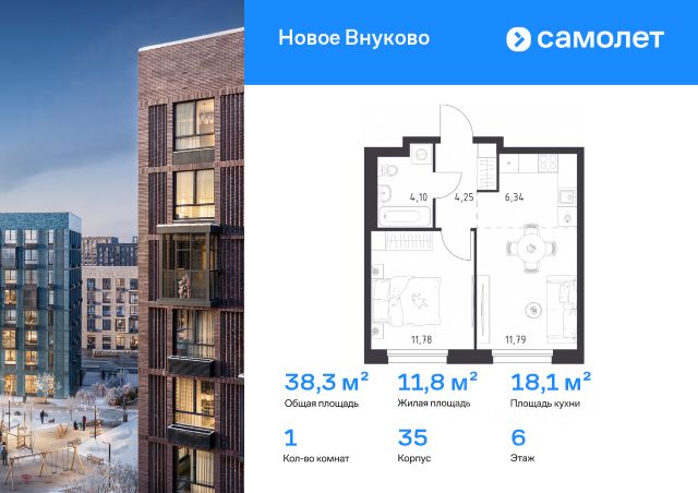 Строим кварталы для жизни с заботой о будущем. Предлагается 1-комнатная квартира комфорт-класса 38,26 кв.м в корпусе 35 на 1 этаже, в ЖК "Новое Внуково" Квартира без отделки. Доступность опции "отделка" и возможность комплектации мебелью и декором уточняйте у застройщика. Приобрести квартиру возможно по специальным акциям от застройщика, с текущими условиями акций можно ознакомиться в блоке "Акций". Цена динамическая и может отличаться, уточняйте актуальность у застройщика. "Новое Внуково" — это жилой комплекс в Новой Москве, у подножия берега реки Незнайка. Поблизости — живописные места для прогулок: народный парк "Ручеек", усадьба Старо-Никольское, Валуевский и Ульяновский лесопарки. Часть домов сдана и внутри района уже открыт детсад с бассейном, а в ближайшее время откроются еще 3 детсада, 2 школы и поликлиника. На территории проекта будет построен первый в России Центр Российской Федерации Баскетбола, где будут площадки с трибунами, тренажерный зал, кафе и конференц-зал. Дворы-парки закрыты от машин и посторонних. На территории — прогулочный маршрут вдоль реки Незнайка и набережная с шезлонгами и качелями для отдыха. Также здесь появится плейхаб "Незнайка на Луне", площадь для мероприятий с сухим фонтаном, летним кинотеатром и кафе. В жилом комплексе — монолитные дома высотой от 6 до 14 этажей. Фасады облицованы кирпичом природных оттенков. Купить квартиру в поселении Кокошкино в Москве.