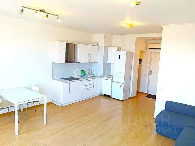 Стильная кухня-гостиная (объединена с просторной лоджией), изолированная спальня, совмещённый санузел с ванной. Ремонт выполнен с хорошим вкусом, все материалы качественные, дизайнерские потолки. Кухня со встроенной техникой премиум-класса: Bork, Siemens, телевизор Samsung.