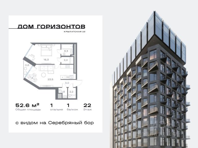 Клубный дом в Крылатском районе уникальный проект для данной локации • Скидки месяца на избранный пул лотов • Рассрочка на выгодных условиях ЛОКАЦИЯ: • Самый экологичный район столицы — более 70% территории Крылатского занимают природные зоны и акватория. • Крылатские Холмы в пешей доступности • 10 минут на автомобиле от Москва-Сити • Удобные выезды на основные магистрали: ТТК, Садовое кольцо ИНФРАСТРУКТУРА РАЙОНА: • Богатая спортивная инфраструктура: велотрек, гребной канал, ледовый дворец, горнолыжная база, теннисные корты и т.д. • Престижные школы и детские сады ДОМ ГОРИЗОНТОВ • 135 квартир, 4 квартиры с террасами, 3 пентхауса • - 2 этажа паркинга с зарядками для электрокаров • Приватная закрытая территория с богатой инфраструктурой для резидентов Квартира видовая с балконом и панорамным остеклением: - Уютная функциональная планировка - Кол-во комнат: 1 - Общая площадь - 52.58 кв.м. - кв.м - 9 этаж 27 этажного дома Вечные виды на зеленые просторы Серебряного Бора и сверкающую ленту Москвы-реки с аркой Живописного моста. ИНФРАСТРУКТУРА УДОБНОЙ ЖИЗНИ: • Круглосуточное видеонаблюдение и контроль доступа • Консьерж-сервис 24/7 • Зарядные станции для электромобилей на подземном паркинге • Индивидуальные келлеры для хранения спортивного инвентаря • Детский физкультурный комплекс с двумя бассейнами Дом Горизонтов — клубное пространство в одном из самых зелёных районов Москвы, где каждая деталь дарит вдохновение и ощущение свободы. Оперативный показ квартиры! Бронирование по телефону Купить квартиру в районе Крылатское в Москве.