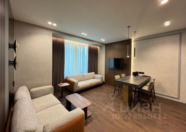 Квартира приобреталась в бетоне от застройщика. Выполнен дизайнерский ремонт в 2021 году с использованием дорогостоящих материалов и мебели от премиальных брендов.
