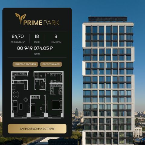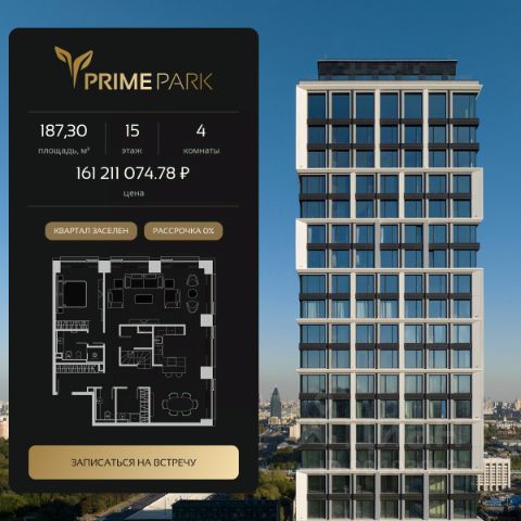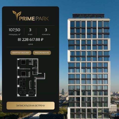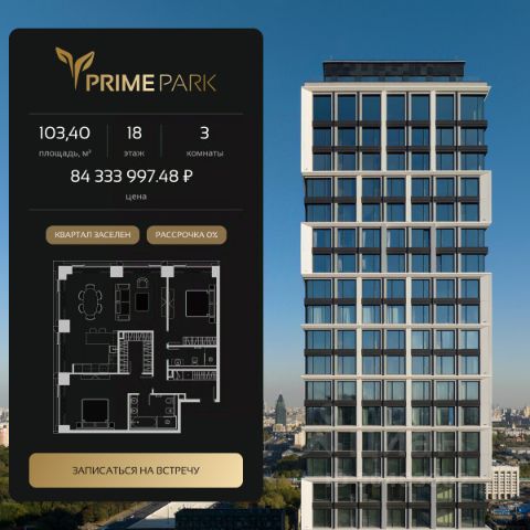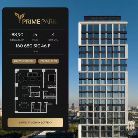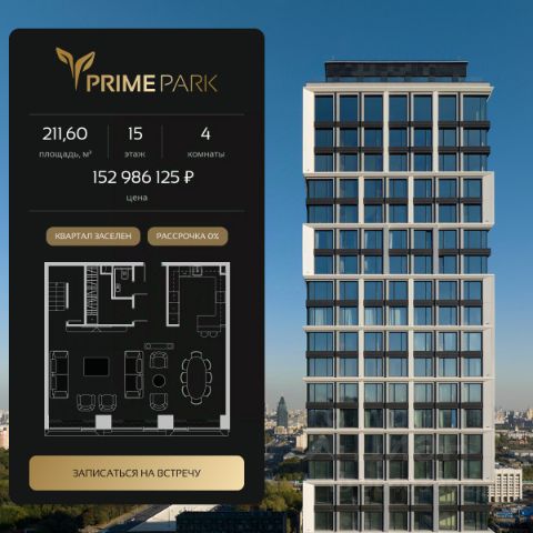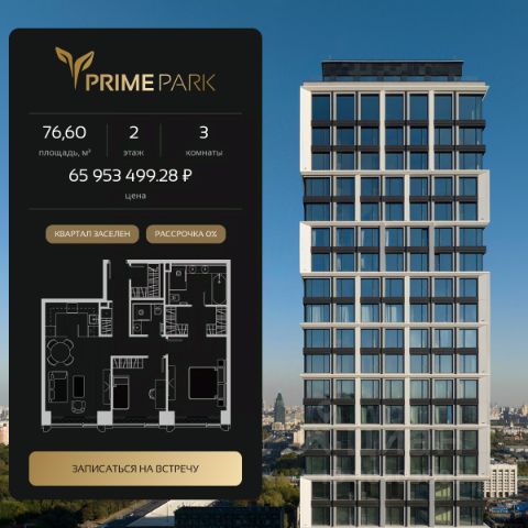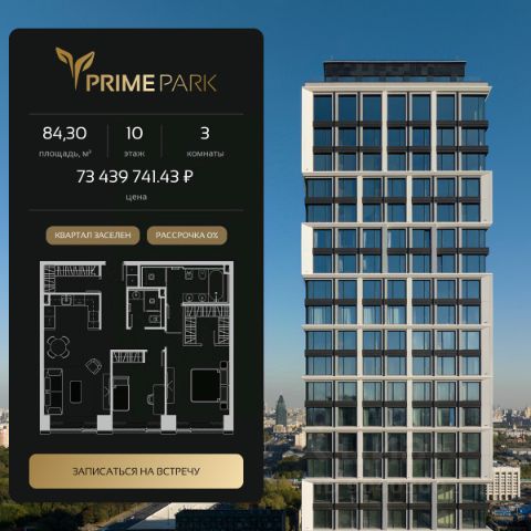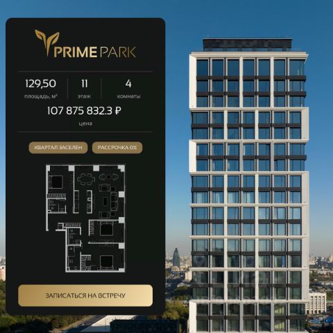 Жилой квартал Prime Park воплощает все преимущества premium-living. Престижная локация на Ленинградском проспекте, 37: - 5 мин. от Тверской улицы, Патриарших прудов и Белой площади, - 20 мин. до аэропорта "Шереметьево" или "Москва-Сити", - 4 парка — Ходынское поле, Петровский и Чапаевский парки, Березовая роща, - 4 станции метро — "ЦСКА", "Аэропорт", "Динамо" и "Петровский парк". Многократный победитель премий European Property Awards и Urban Awards, а также на протяжении пяти лет остается самым продаваемым проектом в своем сегменте. Premium-living Консьержи предугадывают желания резидентов и берут на себя выполнение практически любых бытовых задач. В квартале также есть парк-рейнджер и охрана. Для дополнительного удобства в МОПах предусмотрены почтовые комнаты, колясочные и комнаты для мытья лап домашних питомцев, комната для хранения интернет-заказов. Наличие сервисного входа для персонала позволяет разделить трафик, сохраняя приватную атмосферу в лобби. Резидентам нужно открыть только одну дверь, чтобы оказаться дома: valet-парковщики открывают дверь автомобиля и отвозят его на подземный паркинг, беллмены открывают двери при входе в башню и помогают донести вещи до квартиры, интеллектуальная система обеспечивает бесконтактный вызов лифта. Развитая инфраструктура Близость к центру Москвы, рядом крупнейший ТЦ "Авиапарк", ВТБ Арена, Мегаспорт, ВЭБ Арена, в окружении красивейших парков, включая ультрасовременный Ходынский парк площадью 25 га с панорамными качелями, набережной, фонтанами, детскими и спортивными площадками. На территории квартала предусмотрены приватный фитнес-центр с 25-метровым бассейном и спа, подземный паркинг с кладовыми, местами для хранения велосипедов, электрозарядками и детейлинг-центром для обслуживания автомобилей. На первых этажах башен расположатся кафе и рестораны, цветочный магазин, аптека, салон красоты, премиальный супермаркет и бытовые сервисы. Частный парк Общее парковое пространство квартала — 5,5 га, из них 3 га отведено под частный парк эксклюзивно для резидентов. Большой фонтан, аллеи для прогулок, крупномерные деревья, арт-инсталляции, водные глади, детские площадки и воркаут-зона создают гармоничное сочетание жизни на природе со всеми преимуществами мегаполиса. Уникальная квартирография Более 80 вариантов планировочных решений от однокомнатных квартир до двухуровневых дуплексов и пентхаусов. Панорамные окна, высокие потолки, мастер-спальни, балконы и террасы создают особенный комфорт и уют. Авторская архитектура и дизайн Четыре башни сданы, ключи выдаются в день сделки, 2 башни на этапе строительства, сдача в 2023 и 2024 гг. Уникальный архитектурный ансамбль и ландшафтный дизайн, благородные и ценные материалы в оформлении лобби, предметы искусства, арт-объекты и элементы декора, выполненные на заказ специально для Prime Park, становятся отражением яркой индивидуальности резидентов квартала.