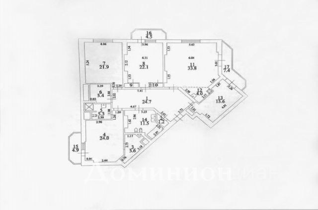 Продается 3-комнатная квартира 145,3м² с авторским ремонтом на 4 этаже 17-этажного монолитного дома в ЖК Dominion (корпус 2).