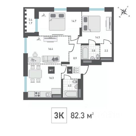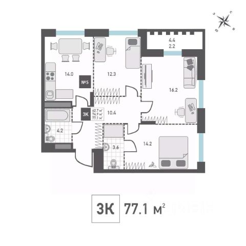 Одна комната - окнами на восход, для жаворонков, другая - на запад и уютный дворик с детской площадкой. Самая большая комната идеально подойдёт для душевных встреч в кругу семьи. Также имеется просторная кухня 9,3 кв.м., два балкона, раздельный санузел и вместительная ниша в прихожей для организации хранения - всё, что нужно для новой комфортной жизни!