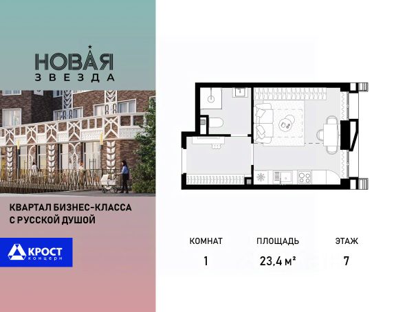 Продаётся 1-к квартира 23.4 кв.м. на 7-м этаже 21 этажного дома, корпус 1 - Резиденция "Вологда". Без отделки. Легендарный квартал "Новая звезда" продолжается II очередью, которая спроектирована как мультифункциональный кластер. ЖК "Новая Звезда" расположен на территории Новой Москвы, в 10 мин. от м. Теплый стан и в 9 мин. пешком от строящейся станции метро "Бачуринская". Дизайн квартала спроектирован так, чтобы создать 2 города — Гостиный двор и комплекс жилых резиденций. Гостиный двор это стилобат, в котором разместятся рестораны, магазины, спортивные секции, детские кружки. Это место для активной городской жизни прямо в вашем квартале. Гостиный двор, безусловно, является уникальным форматом организации общественной жизни, предлагая жителям квартала весь необходимый спектр услуг в шаговой доступности от дома.. Жителям II очереди квартала "Новая звезда" будут доступны все инфраструктурные преимущества единого квартала: - образовательный кластер с уже построенной инновационной школой нового поколения; - спортивная инфраструктура; - торговые площади с услугами на первых этажах жилых домов.Прямая продажа от застройщика ООО СЗ "ГСД".
