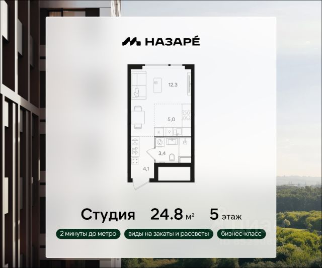 Продается студия в ЖК "НАЗАРЕ'" Общая площадь - 21.60 Тип дома - монолитный Этаж - 25 Год сдачи - 2028 Предлагается квартира площадью 21.60 кв. м в новом современном квартале на востоке Москвы, прямо у станций метро и МЦК "Бульвар Рокоссовского". Квартира располагается в корпусе 3 на 25 этаже комплекса бизнес-класса "НАЗАРЕ'". Великолепная транспортная доступность: • 2 минуты ходьбы до метро и МЦК "Бульвар Рокоссовского"; • 3 минуты на авто - удобный выезд на СВХ (МСД); • 10 минут на авто до национального парка "Лосиный остров"; • 10 минут на авто до "Измайловского парка"; • 15 минут до авто до парка "Сокольники"; • 15 минут занимает выезд на ТТК, • 18 минут на авто до Садового кольца. Индивидуальная архитектура в современном стиле: • шесть башен переменной высотности от 24 до 43 этажей, в том числе одна высотная 143-метровая доминанта, которая станет достопримечательностью востока Москвы; • авторы архитектурной концепции - знаменитое бюро СПИЧ (среди их работ - башня "Федерация", новое здание Третьяковской галереи, реконструкция БСА "Лужники" и др.); • торгово-развлекательный комплекс с фитнес-центром, детской игровой комнатой и открытыми террасами прямо возле квартала; • дизайнерские лобби от бюро ABOVE ARCHITECTURE с панорамными окнами, интерьерами в теплой цветовой гамме и мягкой зоной ожидания располагаются в каждой башне; • корпуса расположены так, чтобы из окон открывались потрясающие виды на закаты и рассветы, зеленые панорамы или огни мегаполиса; Особенности расположения "НАЗАРЕ'" находится максимально близко к метро, и в то же время проект вписан в уже существующую инфраструктуру зеленого столичного района Богородское. Это обеспечивает быстрый доступ ко всем нужным объектам инфраструктуры (детские сады, школы, медцентры, магазины, салоны красоты, фитнес-клубы, футбольные поля, спортивные школы), а также к живописным зеленым зонам - национальному парку "Лосиный остров", парку "Сокольники", Черкизовскому детскому парку, Измайловскому лесопарку с усадьбой Измайлово. Собственная инфраструктура и благоустройство Шесть башен квартала будут объединены цокольным этажом, в который можно попасть как с улицы, так и со стороны лобби. Здесь разместятся необходимые для комфортной повседневной жизни кофейни, супермаркет, рестораны, магазины и многое другое. В комплексе предусмотрен вместительный двухуровневый подземный паркинг с келлерами для хранения сезонных вещей. Во дворе комплекса "НАЗАРЕ'" будут места как для спокойного отдыха и работы, так и для игр и спорта. Здесь организованы игровые площадки для детей всех возврастов, места для стритбола и тенниса, а также зона с природным ландшафтом и коворкинг с экологичной деревянной мебелью. Купить квартиру рядом с метро Черкизовская.