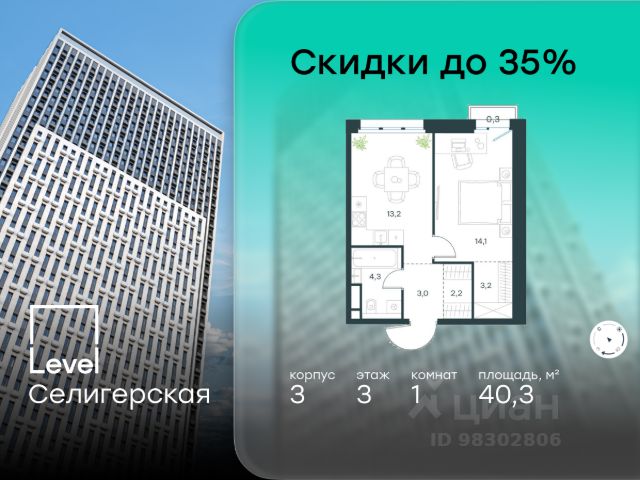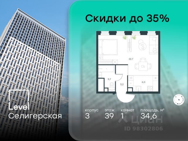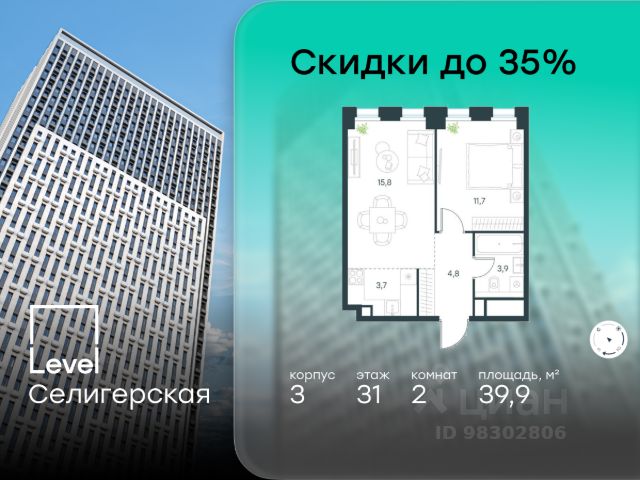 Цена указана с учётом скидки при 100%-й оплате, несубсидированной ипотеке, рассрочке (кроме программы "Рассрочка 0%"). В жилом квартале, расположенном в южной части района Западное Дегунино, продаётся 2-комнатная квартира площадью 47.70 кв.м без отделки. Квартира расположена на 31 этаже 40-этажного корпуса 3 в жилом комплексе комфорт-класса Level Селигерская (компания Level Group/Левел групп). Отличная транспортная доступность: - 10 мин. пешком до станции метро "Селигерская" от корпусов 1-й очереди; - 10 мин. пешком до станции метро "Верхние Лихоборы" от корпусов 2-й очереди; - 20 мин. пешком до станции МЦД-3 "Моссельмаш"; - 11 мин. на авто до МКАД; - 13 мин. на авто до ТТК; - 16 мин. на авто до Садового кольца. Расположение Район отличается богатой социальной инфраструктурой: школы, детские сады, поликлиники, магазины, фитнес-клубы, торговые центры - всё близко к дому. Рядом с Level Селигерская расположено 5 парковых зон. В 3 минутах от дома расположен перспективный сквер-парк. В 10 минутах пешком находится парк им. Святослава Фёдорова, в 13 минутах на велосипеде - парк "Ангарские пруды". В 7-11 минутах на автомобиле - два крупных природных объекта: Тимирязевский парк и Главный ботанический сад Российской академии наук. Благоустройство Внутренние дворы жилого комплекса огорожены от машин, а их функциональное наполнение отличается в зависимости от очереди строительства. На территории 1-й очереди будут: детская площадка, воркаут-зона, места для тихого отдыха и активных игр, а также сенсорный сад и большой луг. Во 2-й очереди жителей ждут уютные навесы с качелями, павильон-читальня, волейбольная площадка, беседки, а также детские и спортивные площадки. Технологии и инженерия Для входа на территорию комплекса предусмотрен единый ключ доступа. Все общественные зоны оснащены камерами видеонаблюдения, по заявке собственнику предоставляется возможность просмотра изображения отдельных видеокамер на его мобильном устройстве. При въезде в паркинг функционирует система распознавания госномеров. Кроме того, для комфорта жителей создано мобильное приложение, с помощью которого можно удаленно контролировать доступ на придомовую и жилую территории. Другие преимущества жилого комплекса - Высокая освещенность квартир: в большинстве из них не меньше трёх окон; - Супермаркет, магазины, кафе, пекарни и многое другое на первых этажах домов; - Частный детский сад; - Стильные дизайнерские лобби с высокими потолками до 4,9 м и окнами в пол, для питомцев предусмотрена лапомойка; - 20+ планировочных решений: от студий до семейных квартир; - С каждого этажа дома на лифте можно спуститься в подземный отапливаемый паркинг. Купить квартиру рядом с метро Дегунино.