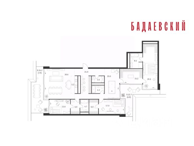 Номер в базе: 883660. Представляем Вашему вниманию эксклюзивное предложение - двухуровневая 6-комнатная квартира в "сталинском" доме у Кутузовского проспекта в престижном районе Дорогомилово.