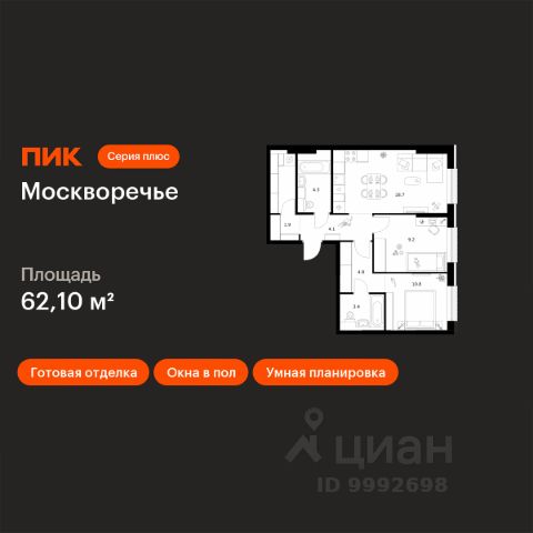 Продаётся 2-комн. квартира площадью 52,3 кв.м на 4 этаже 37 этажного дома (Корпус 1.1, Секция 1) проекта ПИК Москворечье. Светлый просторный подъезд на уровне земли, функциональная планировка, большие окна, c отделкой. Архитектурный проект разработан российским бюро Saga. Он представляет собой живую архитектурную среду, вдохновленную атмосферой исторических центров и разнообразием стилей. При этом каждый элемент разработан с вниманием к деталям и функциональности. Первая очередь, состоящая из четырех корпусов (1.1 - 1.4), запланирована к сдаче уже в 2027 году. Её общая площадь составит 103,3 тыс. м². Рядом с ней также появятся социальные объекты: образовательный центр, дошкольного и школьного образования на 3000 мест, включающий школу на 2500 мест, детские сады на 500 мест. Также на территории жилого квартала откроются два уютных детских сада, каждый на 350 мест и школа на 1350 мест. Кроме того, в "Москворечье" будет построена поликлиника, которую ежедневно смогут посещать до 450 пациентов. Внутри будет установлено современное оборудование для диагностики и профилактики. Также рядом будут созданы общественные пространства, технопарк, который обеспечит район новыми рабочими местами, досуговый центр, спортивные объекты и торговый центр. Все квартиры сдаются с готовой отделкой - заселиться можно сразу после получения ключей. В квартирах будет натяжной потолок, качественный ламинат, обои под покраску с лаконичной фактурой, межкомнатные и входные двери с дополнительной шумоизоляцией. Лобби выполнены в стиле современного минимализма. В отделке использованы долговечные материалы с выразительной фактурой: кирпич сочетается с мраморным бесшовным полом из наливного материала терраццо, гладкой плиткой и стеклом. Для автовладельцев будет доступен подземный паркинг. Особое внимание уделяется зоне первых этажей, где будет сформирована насыщенная городская среда. Здесь появятся общественные пространства, пешеходные галереи, коммерческие помещения и другие полезные сервисы для жителей. Точкой притяжения станет пешеходный бульвар, где будут расположены игровые площадки для детей разных возрастов и спортивные зоны. Квартал отличается хорошей транспортной доступностью. Ближайшие станции метро у жилого квартала "Москворечья" - "Каширская", "Кантемировская" и БКЛ "Варшавская", 1 минута на авто до ЮВХ, 15 минут до ТТК и МКАД. В 15 минутах от проекта парк культуры и отдыха "Долина реки Чертановка" и парк "Коломенское". До музея Царицыно, где регулярно проходят выставки и концерты - 20 минут на автомобиле. Артикул 985042 (Застройщик ООО "СЗ ИМПУЛЬС") Купить квартиру рядом с метро Кантемировская.