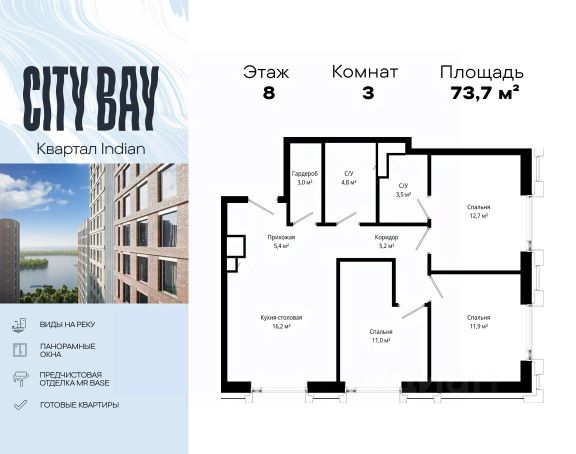 Прямая продажа от застройщика. Продаётся 3-комнатная квартира общей площадью 73.70 м² с предчистовой отделкой в ЖК City Вау на 8-м этаже 20 этажного дома. Корпус сдан. Концепция жилого комплекса City Вау - настоящий город в городе с отлично развитой инфраструктурой и собственной благоустроенной набережной. На территории жилого комплекса расположено пять кварталов - Atlantic, Pacific, Indian, North, Cliff. Жилой квартал City Вау отличается оригинальной концепцией и выделяется среди других проектов такими характеристиками как: - Архитектура, - Виды из окон, - Природное окружение, вызывая гордость у жителей и восхищение у прохожих. Вся жизнь района Покровское-Стрешнево строится вокруг водных объектов: - Пойма реки Сходни с уникальной экосистемой, - Речка Химка и Химкинское водохранилище, - Москва-река, - Канал имени Москвы. Кругом вода, и местные с удовольствием этим пользуются. А сразу за рекой - центр водного спорта в Строгино с вейк-парком и яхт-клубами. Помимо воды, здесь очень много зелени: - Рядом Сходненский ковш памятник природы, естественный амфитеатр глубиной 40 метров; - Парк при усадьбе Братцево с фруктовым садом; - Дубовая роща "Маяк", - Алешкинский лес; - Лесопарк Покровское-Стрешнево с пляжами и бобрами. Главные транспортные артерии района: - Волоколамское шоссе, - Таганско-Краснопресненская линия метро и МЦД-2. Всего за 20 минут можно добраться до центра на машине или метро, а МЦД связывает ЖК City Вау с северными, восточными и юго-восточными районами. Компания MR Group предлагает своим клиентам специальные условия приобретения квартир в рамках программ ипотечного кредитования от банков-партнеров.