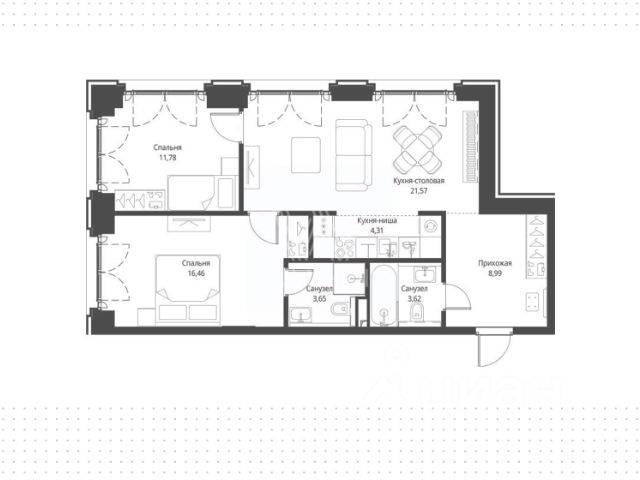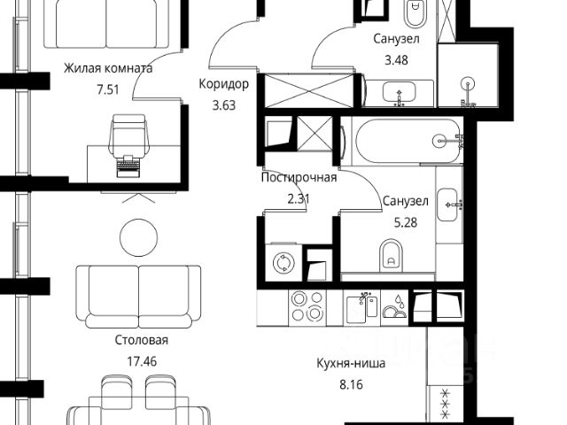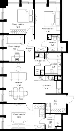 В продаже 2к квартира общей площадью 69,3кв. м. Квартира расположена на 2 этаже 7-этажного дома класса Balanced в новом Рублёво-Архангельском районе Москвы, который строит Сбер. Всего в доме 129 квартир. Квартал В17 это современная интерпретация голландской архитектуры. Каждый корпус квартала имеет свой особый облик. Фасады домов класса Balanced облицованы кирпичом и клинкерной плиткой, над первым этажом расположен декоративный пояс из фигурной кладки, французские балкончики со стороны улицы чередуются с широкими окнами. Квартира сдается без отделки. Установлены двухкамерные стеклопакеты с алюминиевым профилем и скрытыми створками. Высота потолков от 2,7 до 4 метров. В квартирах предустановлена система "умный дом": комплекс систем, связывающий квартиру, дом и прилегающую территорию. Жильцы могут управлять климатом в помещениях, выбирая комфортную температуру, а также управлять освещением по заданным параметрам. Предусмотрена защита от протечек в "мокрых" зонах. Квартал В17 состоит из шести корпусов переменной этажности (1, 2, 5-10 этажей), в которых размещается 491 квартира. Выдача ключей жителям запланирована на декабрь 2026 года. Корпуса объединены общей подземной частью, в которой располагается паркинг на 309 автомобилей, места для мотоциклов, а также более 400 кладовых для жильцов. Квартал имеет приватные благоустроенные дворы с ландшафтными композициями. Предусмотрены детская и спортивная площадки, зона для занятий йогой, места для отдыха, прогулок и беговые дорожки. Рядом с кварталом расположен детский сад. В шаговой доступности парк и набережная Москвы-реки. В доме расположены: - уютное лобби, - лапомойка, - колясочная и велосипедная комната на первом этаже, - подземный паркинг. Безопасность обеспечивают высокотехнологичная система распознавания лиц и камеры в общественных пространствах. СберСити в Рублёво-Архангельском это новый жилой и деловой район на западе Москвы, в одном из самых экологически чистых и престижных мест столицы. Это первая в России и крупнейшая в мире инновационная городская среда, созданная по международным стандартам зелёного проектирования. СберСити это новации в тепло- и энергоснабжении, вакуумное мусороудаление, тестирование зелёных технологий, системы умный дом, а в дальнейшем — внедрение искусственного интеллекта в ЖКХ и управление домом. В центре внимания мегапроекта создание комфортной среды на основе интересов, потребностей и эмоций жителей. Активная фаза строительства проекта началась в 2021 году. Заселение жителей первых корпусов планируется в первой половине 2024 года. Жители нового района получат новое качество и образ жизни. Активная фаза строительства проекта началась в 2021 году. Заселение жителей первых корпусов началось летом 2024 года. Жители нового района получат новое качество и образ жизни. Общая площадь проекта составляет 461 га, жилых строений свыше 2,5 млн кв. м и 815 тысяч кв. м многофункционального офисного пространства. Будет построено 8 школ, 16 детских садов и 2 поликлиники. В СберС Купить квартиру рядом с метро Мякинино.