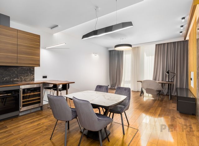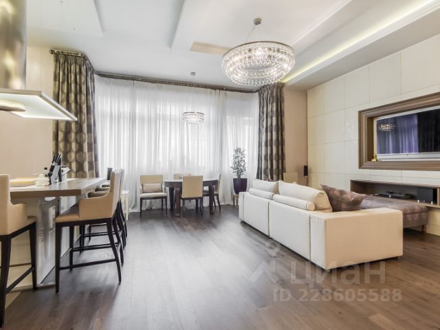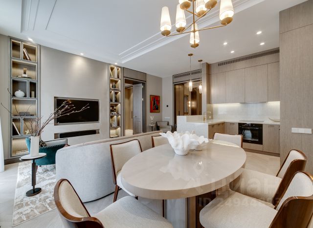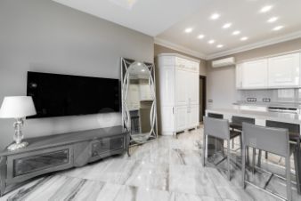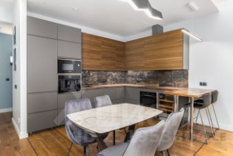 По всему периметру квартиры, включая с/у установлена потолочная акустика фирмы "Buse". Кухня-гостиная оборудована дорогой техникой "Smeg": духовой шкаф-микроволновка, кофе-машина, посудомоечная машина с функцией автооткрывания при завершении работы. Индукционная варочная панель с интеллектуальным распределением активного поля условной конфорки.