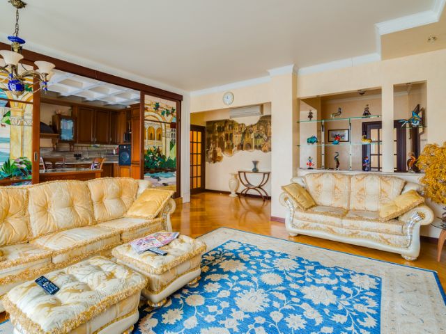 Выполнен высококачественный ремонт. Все материалы отделки, детали интерьера и мебель привезены из Италии и сделаны на заказ. Светильники, картины и предметы интерьера от известных дизайнеров.