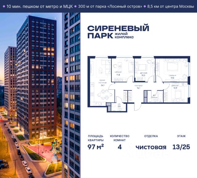 Продаётся 3-комн. квартира площадью 72 кв.м на 4 этаже 17 этажного дома (Корпус 2.3, Секция 2) проекта ПИК Лосиноостровский парк. Светлый просторный подъезд на уровне земли, функциональная планировка, большие окна, без отделки. Жилой квартал "Лосиноостровский парк" расположен на востоке Москвы, в районе Метрогородок. В 12 минутах пешком — станции метро и МЦК "Бульвар Рокоссовского". За 3 минуты на автомобиле можно доехать до СВХ, и за 15 — до ТТК. В 2024 году стартовало заселение первой очереди. Дворы-парки уже благоустроены: в них есть зелёные зоны для отдыха, а также площадки для игр и спорта. Совсем скоро через весь квартал протянется длинный пешеходный бульвар. На первых этажах домов разместятся магазины, кафе и другие сервисы. Район Метрогородок сейчас активно развивается. Скоро здесь появятся новые дома и современные прогулочные зоны. Сам район при этом останется таким же зелёным и просторным, со свежим воздухом и спокойным ритмом жизни. Большую его часть занимает лесопарк "Лосиный остров" — самый крупный национальный парк, расположенный в черте города. Дойти до него можно всего за 10 минут. Артикул 1017974 (Застройщик ООО СЗ "ПЕРСПЕКТИВНЫЕ ИНВЕСТИЦИИ")