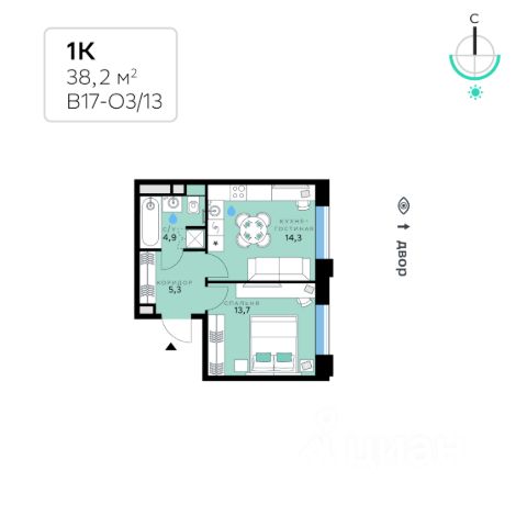 Продаётся 1-комнатная квартира в строящемся доме (квартал В17 ), срок сдачи: I-кв. 2026, общей площадью 38.2 кв.м., на 3 этаже. СберСити в Рублёво-Архангельском