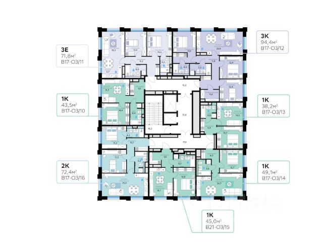 Продаётся 3-комнатная квартира в строящемся доме (квартал В17 ), срок сдачи: I-кв. 2026, общей площадью 72.8 кв.м., на 2 этаже. СберСити в Рублёво-Архангельском