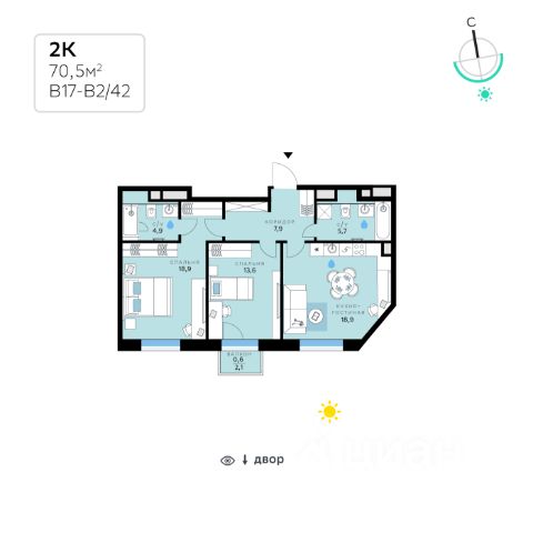 Продаётся 2-комнатная квартира в строящемся доме (квартал В17 ), срок сдачи: I-кв. 2026, общей площадью 70.5 кв.м., на 6 этаже. СберСити в Рублёво-Архангельском