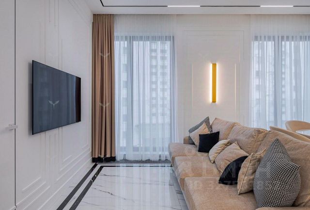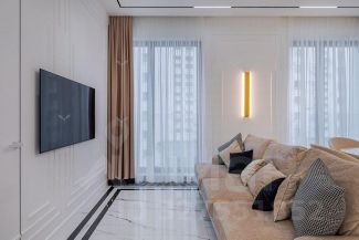 В апартаментах установлены полноразмерные панорамные окна в пол с шумоизоляцией от бельгийской компании Reynaers высотой до 4,5 метров.