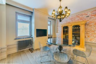В квартире выполнена дорогая отделка с использованием натуральных материалов премиум -класса, в классическом стиле с элементами ар-деко, квартира меблирована и оснащена качественной бытовой техникой. Квартира в идеальном состоянии. Высота потолка 3,3 м.