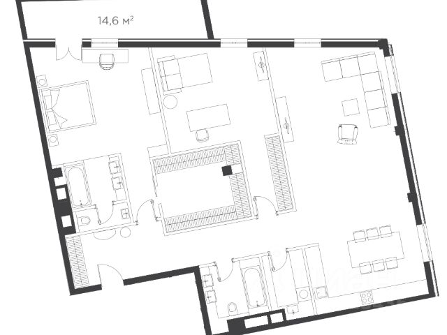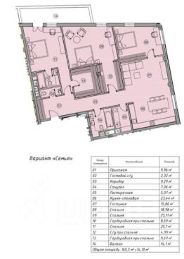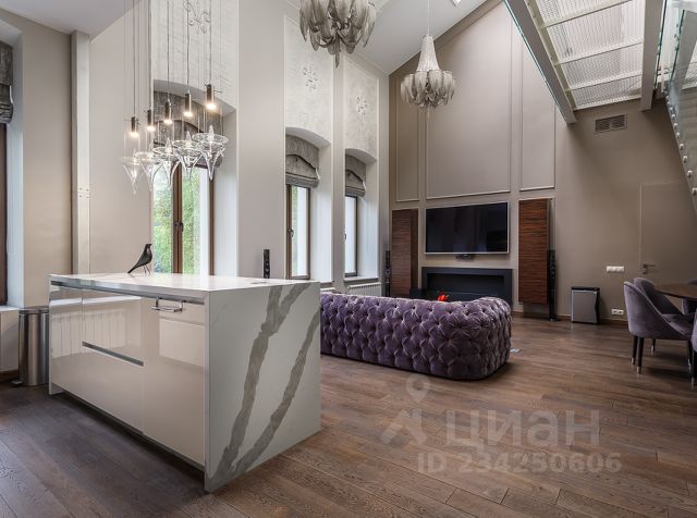 Жилая площадь 140 кв.м. состоит из просторной гостиной 50 кв.м., кабинета 20 кв.м. и трёх изолированных спален 25, 25 и 20 кв.м.