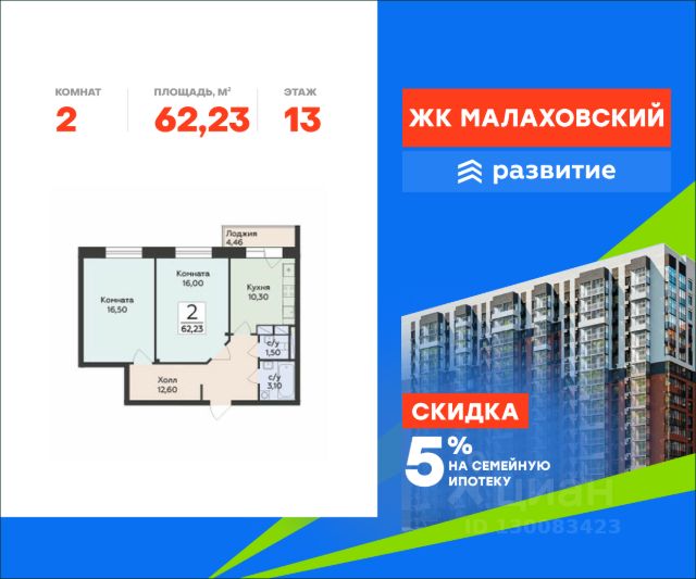 Продается 1-комнатная квартира площадью 40.13 с отделкой White box. Квартира расположена на 4 этаже 17 этажного дома, в 201 корпусе. "Малаховский" - жилой комплекс в Раменском районе Подмосковья, идеально подходящий для семей с детьми. Проект от федерального застройщика ГК "Развитие" находится в тихом и зеленом микрорайоне Родники и отличается удобной транспортной связью с Москвой и Люберцами. Три дома высотой 17 этажей с видами на озеро и парк, просторные квартиры, приватный двор-патио с ландшафтным дизайном и доступная инфраструктура обеспечат жителям новых квартир все преимущества городской жизни в живописном природном окружении. Транспортная доступность - Удобный выезд на Егорьевское шоссе и строящуюся магистраль МЕТК (Москва - Егорьевск - Тума - Касимов); - 18 км от МКАД; - 5 мин. до МЦД-3 "Удельная"; - 29 мин. до метро "Лермонтовский проспект". Архитектура Дома отличаются высокой тепло- и шумоизоляцией, долговечностью, высоким уровнем энергоэффективности и современным внешним видом. Фасады выполнены в спокойной цветовой гамме. Из окон с широкоформатным остеклением открываются виды на березовую рощу, озеро и зеленые дворы. Логичным продолжением архитектуры становятся просторные входные группы, где продумано всё: витражное остекление, высокие потолки, дизайнерская отделка, два выхода на обе стороны дома, а также современные лифты (грузовой и пассажирский) и колясочные. Планировочные решения Планировки комплекса "Малаховский" функциональны и эргономичны, что упрощает зонирование и расстановку мебели. Квартиры оснащены гардеробными, лоджиями с панорамным остеклением, двумя санузлами (даже в однокомнатных) и просторными прихожими. Высота потолков - 2,7 м. Квартиры сдаются с отделкой white box, которая позволит воплотить индивидуальный дизайн-проект по своему вкусу. Доступны варианты отделки "под ключ" с применением лучших дизайнерских материалов. Благоустройство В жилом комплексе тщательно продумана концепция благоустройства. Через всю территорию тянутся живописные прогулочные бульвары с ландшафтным дизайном и всесезонным озеленением. Рядом обустроено 3 современных детских площадки с мягким покрытием, а для взрослых предусмотрены уютные лаунж-зоны для общения, тихого отдыха и спорта на свежем воздухе. Двор каждого дома свободен от машин, а для дополнительного уюта и безопасности здесь установлено современное освещение. Естественным продолжением дворового ландшафта становится березовая роща с природными тропинками и небольшим водоемом, прилегающая к жилому комплексу. Инфраструктура и окружение - Наземный паркинг на 55 машино-мест и гостевая парковка; - Все повседневные сервисы (кафе, магазины, салоны красоты) прямо в вашем доме; - Фитнес-клуб, бассейн, спортивные площадки и велодорожки в многочисленных парках микрорайона Родники; - 2 школы, гимназия и детский сад в шаговой доступности; - ТЦ "Родники" с рестораном и супермаркетом; - Петропавловский парк с благоустроенным детским городком и волейбольной площадкой; - Благоустроенная бе