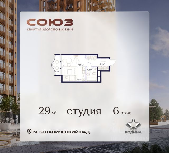 Рассрочка 0% Продаётся 1-комнатная квартира площадью 42.9 м² на 9 этаже в Жилом Комплексе "Союз". Квартал здоровой жизни премиум-класса с рекордным количеством олимпийских видов спорта: - Ледовая арена для хоккея и фигурного катания, - Футбольные поля для тренировок, - Спортивный зал для фехтования, - Бассейн на 6 дорожек, - Центр единоборств, - 4 крытых площадки для настольного тенниса, - 7 теннисных кортов (крытых и открытых), - 4 крытых площадки для сквоша, - Легкоатлетический стадион, - Площадки для баскетбола и волейбола. Уникальные форматы квартир с мастер-спальнями, приватными террасами, балконами, а также пентхаусы с открыточными видами на город. Все квартиры продаются с отделкой Shell&Core и панорамным остеклением. Расположение Пешком: - 2 мин. до парка "Сад Будущего"; - 6 мин. до ст. м. "Ботанический сад"; - 6 мин. до ст. МЦК "Ботанический сад"; - 6 мин. до парка "Леоновская роща"; На автомобиле: - 2 мин. до СВХ (МСД); - 5 мин. до Проспекта Мира; - 10 мин. до ТТК; - 15 мин. до Садового кольца; - 25 мин. до аэропорта "Шереметьево". Благоустройство - собственная спортивная инфраструктура 7 Га; - зона для пикников; - игровые и спортивные площадки для детей всех возрастов; - розарий, а также сосновые, каштановые и дубовые аллеи; - площадки под открытым небом для занятий спортом и йоги; - игровые комнаты для детей; - лаунж-зона для резидентов; - просторная переговорная для деловых встреч; - премиальный ресторан "Шабада" Сосо Павлиашвили с водными арт-объектами на прогулочной аллее, садом ароматных трав и сценой под открытым небом; - кафе, химчистки, аптеки и супермаркеты рядом с домом. Окружение - 8 парков: Сад Будущего, Леоновская роща, Хуамин, Главный ботанический сад РАН, Шереметьевская дубрава, Останкино, парк спорта "Яуза", пойма реки Яуза и музей-усадьба "Останкино"; - 3 ВУЗа: ВГИК, РГСУ, МГПУ; - 12 школ, в том числе: школа 1499 им. И.А. Докукина (топ 100), Brookes Moscow, IThub школа; - 18 детских садов, в том числе билингвальный ALERTUM KIDS; - один из крупнейших океанариумов Европы "Москвариум"; - один из крупнейших в Европе торгово-развлекательных центров "Европолис". Купить квартиру рядом с метро ВДНХ.