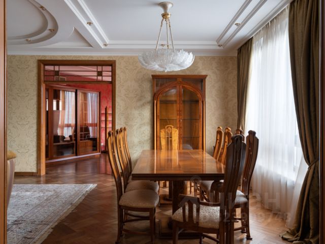 Квартира с тремя спальнями общей площадью 280 м² в клубном комплексе делюкс-класса "Парк Палас" на "Золотой Миле" в Хамовниках. Квартира с новой отделкой расположена на 3-м этаже. В оформлении использованы натуральные материалы — мрамор от компании "КАМ", колонна из кварцита от Aisberg, гранитные подоконники Magma, на полу тонированный дуб. Остальные материалы: алебастр, латунь, эксклюзивный шпон, натуральные камни, перламутр, хрусталь, авторское стекло, шелк, бархат.