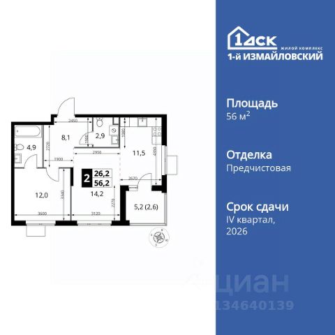Прямая продажа от застройщика! Жилой Комплекс Комфорт класса. Продаётся 2-к квартира номер 512 общей площадью 56.2 кв.м. на 21-м этаже 23 этажного здания. Отделка Whitebox. Цена с учётом скидки. Особенности квартиры: - Мастер-зона с санузлом. Уют и комфорт в одном пространстве. - Угловая планировка - больше пространства для ваших идей. - Увеличенное количество окон - дополнительное освещение и свежий воздух. - Угловое остекление - свет и воздушность в каждой комнате. - Гостевой санузел - комфорт и удобство для ваших гостей. - Евроформат - просторное и удобное жилье с отличной планировкой. - Гибкая планировка - создайте пространство по своему вкусу. - Место для игры/занятия спортом - идеальное пространство для активных детей. - Можно оборудовать рабочее место - комфорт для работы и учёбы. - Можно сделать распашные двери - удобный доступ и стильный акцент. - Просторная мягкая зона - комфорт и уют для отдыха всей семьи. - Кухня-гостиная - идеальное пространство для встреч с близкими. - Наличие острова на кухне - удобство и стиль для вашей кухни. - П-образная утопленная кухня - оптимальное решение для большой семьи. - Возможность добавить спальное место - дополнительный комфорт для гостей. - Ниша под шкаф - компактное и удобное место для вещей. - Лоджия - уютное место для отдыха и тишины. - Просторная лоджия - идеальное место для уютных вечеров. - Панорамное остекление лоджии - открывает вид на окружающий мир. Квартира с предчистовой отделкой (White box). Вам не придется заниматься черновыми и трудоёмкими работы, а чистовую отделку и дизайн - сделайте на свой вкус. Информация о комплексе: Современный архитектурный проект "1-й Измайловский" - идеальное место для проживания, расположенное в восточной части Москвы в окружении 14 000 гектаров леса. Комплекс пронизан атмосферой здорового образа жизни и благополучия. Сиреневый сад и близлежащие лесопарки - это места, где можно насладиться лыжными прогулками зимой и тонизирующими пробежками летом. Расположенный между Щелковским шоссе и Амурской улицей, "1-й Измайловский" осмысляет себя не столько через близость к городским точкам притяжения, сколько через соседство с зелеными пространствами и спортивными объектами. Он отгорожен от шоссе застройкой первой линии и собственными садами здоровья. В его окнах - изумрудное море парка "Лосиный остров" и густые кроны окрестных дворов. В его графике - занятия спортом и прогулки в Измайлове. Транспортная доступность: Не более 2,5 км до станций метро "Щёлковская" и "Черкизовская" и МЦК "Локомотив". Щёлковское шоссе соединяет квартал с Северо-восточной хордой и МКАД, Центральным автовокзалом и Восточным железнодорожным вокзалом. Две автобусные остановки в паре минут ходьбы и 11 маршрутов общественного транспорта. На автомобиле 3 минуты до СВХ 12 минут до ТТК 15 минут до Садового кольца Внутренняя инфраструктура: Комплекс находится в исторически сложившемся районе Москвы с хорошим качеством и плотностью инфраструктуры.