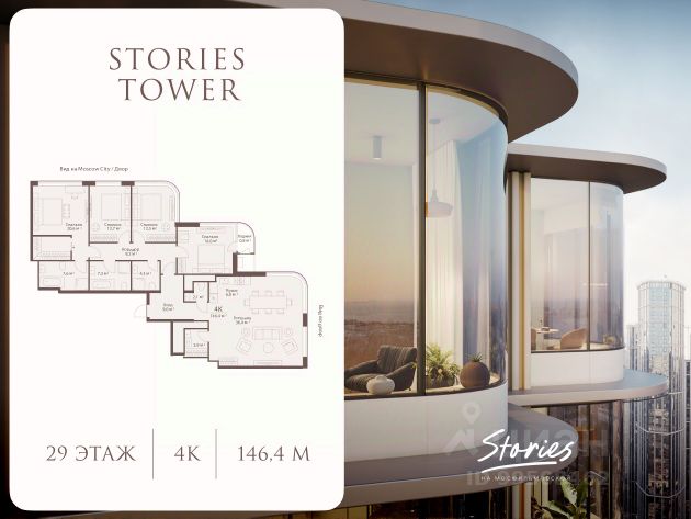 Замечательная евро-двухкомнатная квартира в кирпично-монолитном комплексе бизнес-класса - Stories на Мосфильмовской - ул. Мосфильмовская д.100.
