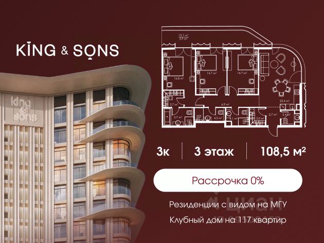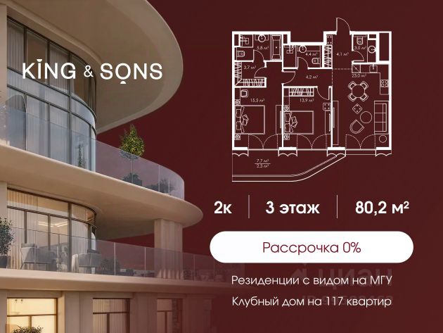 Главное о доме. "Золотые Ключи 2" — ансамбль из трёх корпусов премиум-класса, стоящих у природного заказника "Долина реки Сетунь". Кирпичные фасады разных оттенков создают тёплую палитру, а панорамные окна выпускают внутрь виды на Воробьёвы горы и парк Победы. Внутри — клубная инфраструктура: spa-комплекс, фитнес-клуб Hills, террасы с бассейнами на верхних этажах и зимние сады. Для детей работают Английская академия, британский детский сад и даже собственный мини-зоопарк. Во дворах устроены теннисные корты, футбольное поле, беседки и зоны для барбекю.