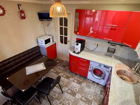 Кухня: набор. Меблирована. Техника: электроплита, холодильник, стиралка.