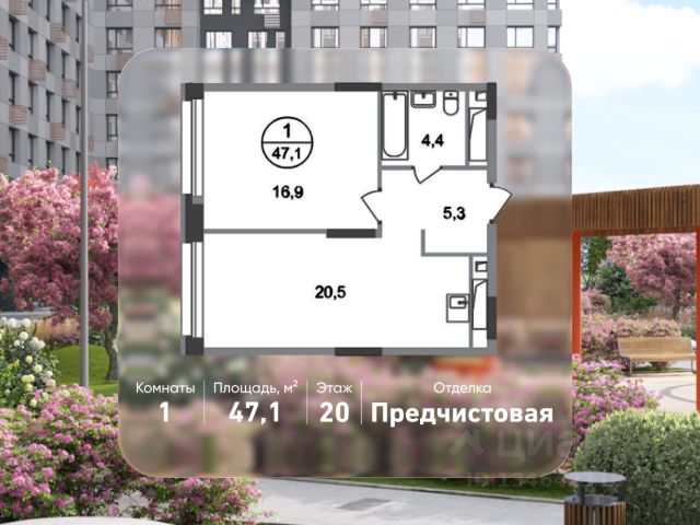 Продается квартира-студия без отделки в 7 фазе города-парка "Первый Московский". Общая площадь квартиры - 21 кв. м, этаж 6 из 20. Срок сдачи - 1 квартал 2027 года. Тип дома - монолитный. ТОЛЬКО ДО 30 АПРЕЛЯ выгодные условия на приобретение квартиры в ипотеку или рассрочку. Звоните - и мы подберем оптимальное предложение под ваш запрос! Корпус состоит из 3 секций. Город-парк "Первый Московский" расположен всего в 7 км по Киевскому шоссе от МКАД на территории Новой Москвы. Из города-парка прямой выезд на Киевское шоссе и трассу Солнцево-Бутово-Варшавское шоссе. ТРАНСПОРТНАЯ ДОСТУПНОСТЬ: - 5 мин. на личном автомобиле или 10 мин. на автобусе 189 и 147 до станции метро "Филатов Луг" - 25 мин. пешком до станции метро "Филатов Луг" ИНФРАСТРУКТУРА: Около 7 фазы запланировано строительство детского сада, школы, 2 многоуровневых паркингов. Также на территории проекта есть все необходимые объекты действующей социальной и бытовой инфраструктуры: 8 детских садов, 5 школ, ТЦ, магазины, паркинги, аптеки и др. БЛАГОУСТРОЙСТВО: - Дворы без машин - Игровые зоны для детей, зоны для занятия спортом, зоны для отдыха с навесами/качелями - Детские площадки разделены по возрастным группам - Пешеходный и веломаршрут с двухполосной велодорожкой 2,5 м в ширину - Озеленение с растениями всесезонного цветения ОСОБЕННОСТИ АРХИТЕКТУРЫ: В каждой секции 3 корпуса предусмотрены: - колясочные во входных группах - кладовые помещения с -1 по 20 этажи - коммерческие помещения на 1 этажах - по 4 лифта: 2 пассажирских, 2 грузовых - видеонаблюдение, установленное в холлах первых этажей, у подъездов и на прилегающей территории АВТОРСКИЙ ДИЗАЙН: Входные группы выполнены по авторскому дизайну, оснащены системой "тёплый пол". В каждой входной группе будет располагаться комфортабельная зона ожидания с мягким диваном, акцентными пуфами и столиком.