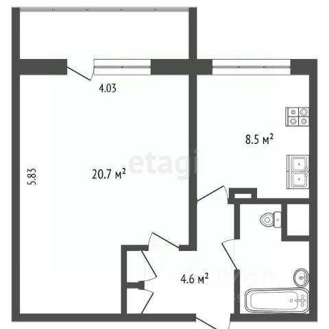 Общая площадь квартиры вместе с балконом 47,6 м2