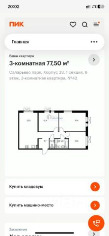 -распашонка, - кухня-гостиная (31,4 м²), - спальня и две детские (12,4 м²; 10,8 м²; 12,9 м²), - две застекленные лоджии (одна с видом во двор, вторая с видом на Битцевский парк) (4,8 м²; 4,6 м²), - раздельный санузел (5,3 м²; 1,6 м²),- кладовая пенал с полками, - пенал со стиральной машиной и бойлером, - гардеробная (3,4 м²), - прихожая со встроенным шкаф-купе (8,13 м²; 0,8 м²).