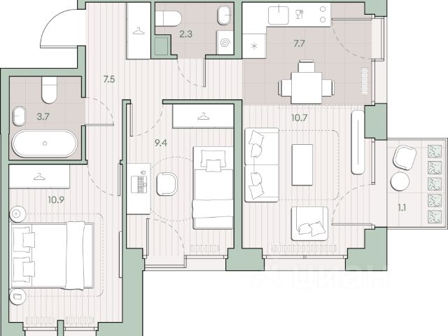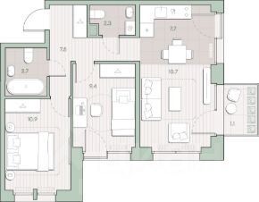 О квартире Продаётся 3-комнатная квартира общей площадью 83.1 кв.м. без отделки. Квартира расположена на 4 этаже корпуса 5.7 в жилом комплексе бизнес-класса "Среда на Лобачевского" в пешей доступности от метро "Аминьевская". О жилом комплексе "Среда на Лобачевского" полностью соответствует критериям современного жилого пространства. Взяв за основу рациональный подход, мы гармонично соединили дизайн, актуальные тренды и функциональность. Продуманный современный экстерьер и функциональные планировки внутри, приватные пространства и разнообразные досуговые зоны для каждого члена семьи — все это "Среда на Лобачевского". Инфраструктура Район отлично развит и наполнен жизнью, здесь уже есть вся необходимая инфраструктура — детские сады, школы, медучреждения, торговые центры, благоустроены парки для прогулок и отдыха, удобен и легкодоступен городской транспорт. Рядом расположены учебные корпуса крупных университетов — МГУ, МГИМО и РАНХиГС. Школы и детские сады в районе занимают высокие позиции в городских рейтингах, поэтому вам не придется беспокоиться о качестве образования детей. Как и об отдыхе: поблизости расположены живописные пруды, реки и парки. Это Парк Олимпийской деревни, Парк имени 50-летия Октября, Мещерский парк и Очаковские пруды. Теперь поставить галочки в еженедельном чек-листе "спорт-прогулки-встречи с друзьями" можно, не покидая любимый район. Особенности Особое внимание в проекте уделяется созданию функциональных пространств не только внутри дома, но и за его пределами. В ландшафтном парке "Среды на Лобачевского" расположены крытые зоны для спокойного времяпровождения, места для активного отдыха и спорта, коворкинг, соседский комьюнити-центр, водные объекты. —Ландшафтный парк во дворе. —Водный сад с зонами отдыха. —Зоны коворкинга. —Дизайнерские гранд-лобби. —Бесключевой доступ. —Подземный паркинг.
