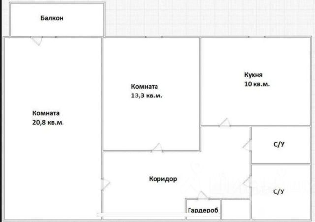 Квартира представляет собой: входная зона, коридор, 2 раздельные комнаты, гардеробная, ванная, санузел раздельный, кухня, лоджия (в большой комнате). В кухне кухонный гарнитур, обеденный стол, стулья, холодильник, встроенная техника (варочная панель, духовой шкаф, вытяжка, посудомоечная машина).