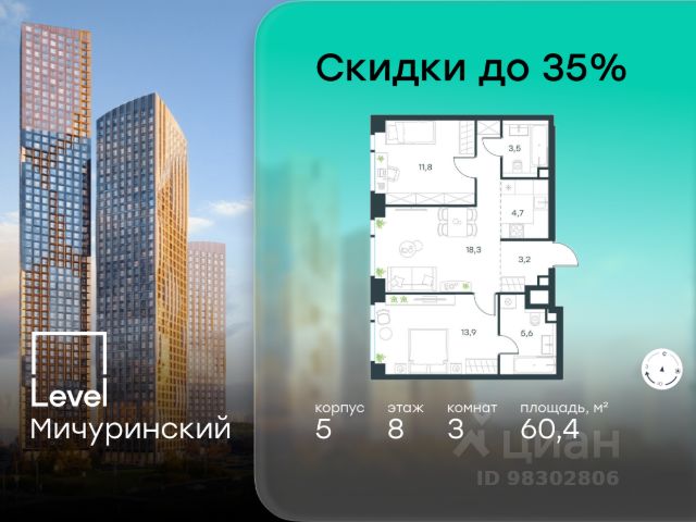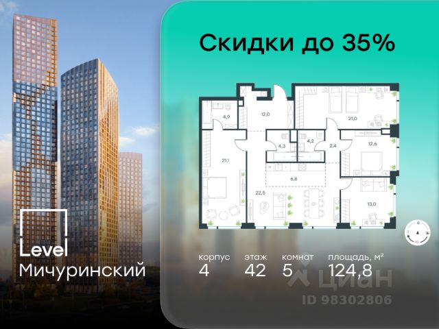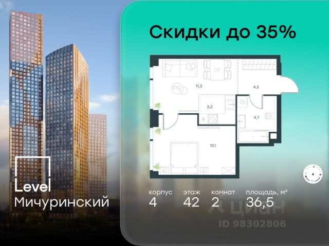 Цена указана с учётом скидки при 100%-й оплате, несубсидированной ипотеке, рассрочке (кроме программы "Рассрочка 0%"). В жилом квартале, расположенном на границе с природным заказником "Долина реки Очаковки", продаётся 2-комнатная квартира площадью 36.50 кв.м без отделки. Квартира расположена на 42 этаже 45-этажного корпуса 4 в жилом комплексе бизнес-класса Level Мичуринский (компания Level Group/Левел групп). Отличная транспортная доступность - 10 мин. пешком до станции метро "Мичуринский проспект" - 15 мин. пешком до станции метро "Аминьевская" - 7 мин. на авто до МКАД - 10 мин. на авто до ТТК - 15 мин. на авто до Москва-Сити Продуманный архитектурный проект - Выразительная архитектура от известных бюро: корпуса 1-6 - СПИЧ, корпуса 7-13 - Borisov Architects; - Из окон открываются живописные виды на парки, Москва-Сити и МГУ; - Высокие потолки до 6,35 м; - Стильные лобби с окнами в пол и высокими потолками до 4,7 м; - С каждого этажа дома на лифте можно спуститься в подземный отапливаемый паркинг. Расположение Level Мичуринский строится в одном из самых зеленых районов Москвы - Очаково-Матвеевское. Этот уголок столицы идеален для поддержания здорового образа жизни. В шаговой доступности от проекта находятся заказник "Долина реки Очаковки" - 1 мин. пешком и Очаковский парк - 7 мин. пешком. На велосипеде можно добраться до таких парков, как "Событие", парк Олимпийской деревни, парк 50-летия Октября и парк Школьников. В 15-минутной доступности на авто расположено более 30 детских садов (из них 14 в пешей доступности), 32 школы (из них 13 в пешей доступности) и 14 вузов. В ближайшем окружении работает более 25 медицинских учреждений, 11 спортивных клубов и 22 продуктовых супермаркета. Внутренняя инфраструктура На территории жилого комплекса строится три детских сада и школа. На первых этажах домов откроется супермаркет, фитнес-центр, ресторан, кафе и другие сервисы. Подземные этажи займут паркинги: трехуровневые в этапах 1 и 2, одноуровневый в этапах 3 и 4. Преимущества проекта - 4,5 га благоустроенной территории с видовым мостом, уличным кинотеатром, зонами для тихого отдыха, работы, воркаута, площадки для петанка, футбола, настольного тенниса и пляжного волейбола; - Дизайнерские лобби с панорамным видом на двор, мойками для лап животных и комфортными зонами ожидания. - Безопасность жителей: круглосуточное видеонаблюдение всех зон общего пользования (лобби, лифты, паркинги, детские площадки), система контроля доступа, управление видеодомофоном через мобильное приложение, единый ключ доступа на территорию жилого комплекса. - Технологии и комфорт: высокоскоростной Wi-Fi в лобби и на придомовой территории, автоматическая система контроля и учета ресурсов, абонентская связь с консьержем, распознавание номеров автомобилей при въезде/выезде в/из паркинга. Купить квартиру на улице Озерная в Москве.