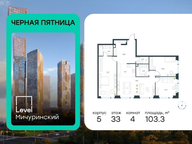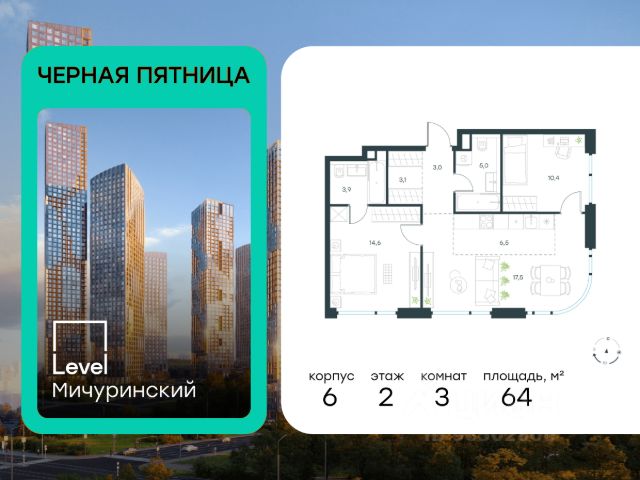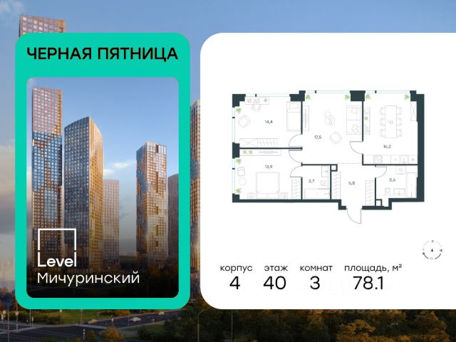Цена указана с учётом скидки В жилом квартале, расположенном на границе с природным заказником "Долина реки Очаковки", продаётся 3-комнатная квартира площадью 60.40 кв.м с отделкой white box. Квартира расположена на 8 этаже 37-этажного корпуса Корпус 5 в жилом комплексе бизнес-класса Level Мичуринский (компания Level Group/Левел групп). Отличная транспортная доступность - 10 мин. пешком до станции метро "Мичуринский проспект" - 15 мин. пешком до станции метро "Аминьевская" - 7 мин. на авто до МКАД - 10 мин. на авто до ТТК - 15 мин. на авто до Москва-Сити Продуманный архитектурный проект - Выразительная архитектура от известных бюро: корпуса 1-6 - СПИЧ, корпуса 7-13 - Borisov Architects; - Из окон открываются живописные виды на парки, Москва-Сити и МГУ; - Высокие потолки до 6,35 м; - Стильные лобби с окнами в пол и высокими потолками до 4,7 м; - С каждого этажа дома на лифте можно спуститься в подземный отапливаемый паркинг. Расположение Level Мичуринский строится в одном из самых зеленых районов Москвы - Очаково-Матвеевское. Этот уголок столицы идеален для поддержания здорового образа жизни. В шаговой доступности от проекта находятся заказник "Долина реки Очаковки" - 1 мин. пешком и Очаковский парк - 7 мин. пешком. На велосипеде можно добраться до таких парков, как "Событие", парк Олимпийской деревни, парк 50-летия Октября и парк Школьников. В 15-минутной доступности на авто расположено более 30 детских садов (из них 14 в пешей доступности), 32 школы (из них 13 в пешей доступности) и 14 вузов. В ближайшем окружении работает более 25 медицинских учреждений, 11 спортивных клубов и 22 продуктовых супермаркета. Внутренняя инфраструктура На территории жилого комплекса строится три детских сада и школа. На первых этажах домов откроется супермаркет, фитнес-центр, ресторан, кафе и другие сервисы. Подземные этажи займут паркинги: трехуровневые в этапах 1 и 2, одноуровневый в этапах 3 и 4. Преимущества проекта - 4,5 га благоустроенной территории с видовым мостом, уличным кинотеатром, зонами для тихого отдыха, работы, воркаута, площадки для петанка, футбола, настольного тенниса и пляжного волейбола; - Дизайнерские лобби с панорамным видом на двор, мойками для лап животных и комфортными зонами ожидания. - Безопасность жителей: круглосуточное видеонаблюдение всех зон общего пользования (лобби, лифты, паркинги, детские площадки), система контроля доступа, управление видеодомофоном через мобильное приложение, единый ключ доступа на территорию жилого комплекса. - Технологии и комфорт: высокоскоростной Wi-Fi в лобби и на придомовой территории, автоматическая система контроля и учета ресурсов, абонентская связь с консьержем, распознавание номеров автомобилей при въезде/выезде в/из паркинга. Купить квартиру на улице Озерная в Москве.