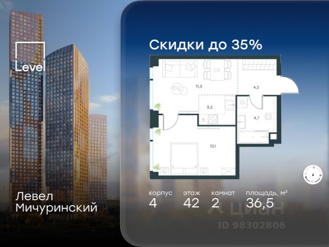 Цена указана с учётом скидки при 100%-й оплате, несубсидированной ипотеке, рассрочке (кроме программы "Рассрочка 0%"). В жилом квартале, расположенном на границе с природным заказником "Долина реки Очаковки", продаётся 2-комнатная квартира площадью 35.80 кв.м без отделки. Квартира расположена на 9 этаже 54-этажного корпуса 1 в жилом комплексе бизнес-класса Левел Мичуринский (компания Level Group/Левел групп). Отличная транспортная доступность: - от 10 мин. пешком до станции метро "Мичуринский проспект" - 15 мин. пешком до станции метро "Аминьевская" - 7 мин. на авто до МКАД - 10 мин. на авто до ТТК - 15 мин. на авто до Москва-Сити Продуманный архитектурный проект: - Выразительная архитектура от известных бюро: корпуса 1-6 - СПИЧ, корпуса 7-13 - Borisov Architects; - Из окон открываются живописные виды на парки, Москва-Сити и МГУ; - Высокие потолки до 6,35 м; - Стильные лобби с окнами в пол и высокими потолками до 4,7 м; - С каждого этажа дома на лифте можно спуститься в подземный отапливаемый паркинг. Расположение: Жилой комплекс Левел Мичуринский строится в одном из самых зелёных районов Москвы - Очаково-Матвеевское. Этот уголок столицы идеален для поддержания здорового образа жизни. В шаговой доступности от проекта находятся заказник "Долина реки Очаковки" - 1 мин. пешком и Очаковский парк - 7 мин. пешком. На велосипеде можно добраться до таких парков, как "Событие", парк Олимпийской деревни, парк 50-летия Октября и парк Школьников. В 15 минутах езды на авто расположено более 30 детских садов (из них 14 в пешей доступности), 32 школы (из них 13 в пешей доступности) и 14 вузов. Также в ближайшем окружении - более 25 медицинских учреждений, 11 спортивных клубов и 22 продуктовых супермаркета. Внутренняя инфраструктура: На территории жилого комплекса строится три детских сада и школа. На первых этажах домов откроется супермаркет, фитнес-центр, ресторан, кафе и другие сервисы. Подземные этажи займут паркинги: трёхуровневые - в этапах 1 и 2, одноуровневый - в этапах 3 и 4. Преимущества проекта: - 4,5 га благоустроенной территории с видовым мостом, уличным кинотеатром, зонами для тихого отдыха, работы, воркаута, площадки для петанка, футбола, настольного тенниса и пляжного волейбола. - Дизайнерские лобби с панорамным видом на двор, мойками для лап животных и комфортными зонами ожидания. - Безопасность жителей: круглосуточное видеонаблюдение всех зон общего пользования (лобби, лифты, паркинги, детские площадки), система контроля доступа, управление видеодомофоном через мобильное приложение, единый ключ доступа на территорию жилого комплекса. - Технологии и комфорт: высокоскоростной Wi-Fi в лобби и на придомовой территории, автоматическая система контроля и учёта ресурсов, абонентская связь с консьержем, распознавание номеров автомобилей при въезде в паркинг и выезде из него. Купить квартиру на улице Озерная в Москве.