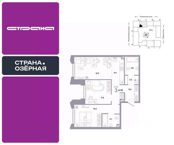 Новая квартира в ЖК "Страна.Озёрная" напрямую от федеральной группы компаний "Страна Девелопмент". Финансовый партнер - Сбербанк России. 3комнатная квартира площадью 68,6кв. м. на 8этаже в доме "Байкал" жилого комплекса "Страна.Озёрная" . Срок сдачи дома - 2 квартал 2026 года. ЖК "СТРАНА,ОЗЕРНАЯ" Жилой комплекс ЖК "Страна.Озёрная" новое пространство для жизни и вдохновения на карте Москвы в престижном Западном округе, где есть все для комфортной жизни: магазины и полезные сервисы, консьерж-сервис, просторное гранд-лобби и детский сад. Архитектура комплекса гармонирует с природой вокруг и дополняет городское пространство. Даже подсветка фасадов работает на воплощение главной идеи: баланс между городом и природой. ПРЕИМУЩЕСТВА Система "умный дом" в каждой квартире Парадные и лобби. На первом этаже дома — зона для отдыха и коворкинга, лапомойка для собак и колясочные Охрана, видеонаблюдение 24/7 и доступ к камерам в мобильном приложении Паркинг с въездом по считыванию номеров, системой контроля выбросов CO2, тележками для покупок и велопарковкой торговая галерея на первом этаже дома В двух минутах от комплекса станция метро "Озёрная". ОТДЕЛКА Необходимые работы уже выполнены: подведены холодная, горячая вода и электричество, установлены батареи. В квартире не проводились отделочные работы: не выровнены стены и пол. ДИЗАЙНЕРСКАЯ ОТДЕЛКА Квартиры доступны как с уже выполненной отделкой, так и без отделочных работ. Пять вариантов на выбор: shell&core, pearl, coast, cliff. СПОСОБЫ ПОКУПКИ Сотрудники "Страна Девелопмент" будут сопровождать вас на каждом этапе сделки, помогут получить одобрение по ипотеке или снизить ежемесячный платеж. - ипотека - материнский капитал -100% оплата наличными