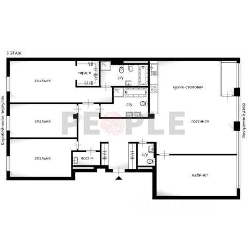 - спальня со своим санузлом (ванна) и гардеробной комнатой;