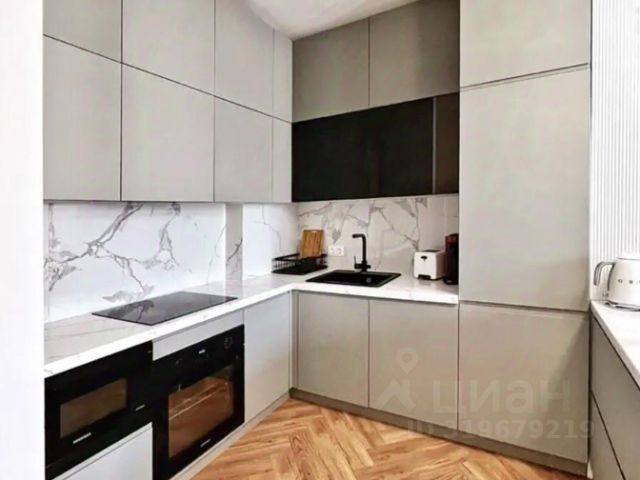 В квартире выполнена премиальная дизайнерская отделка с использованием высококачественных и натуральных материалов, таких как: натуральный мрамор, анодированная бронза, натуральный итальянский шпон, анодированная латунь.