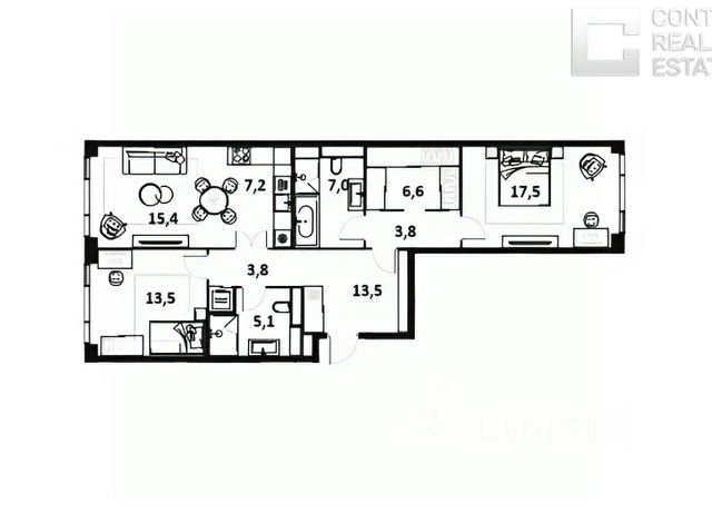 В премиальном жилом квартале Прайд продается 4-комнатная квартира в 1 корпусе, на 9 этаже, в секции 6. Её общая площадь составляет 116.3 м². Пространство включает 3 уютные спальни 14,2 м², 14,2 м², 15 м², просторную кухню-гостиную 27,5 м² и 2 ванные комнаты 5,7 м² и 8 м². Ключи в 2026 году. Удобная локация: Жилой квартал расположен в 15 минутах от Цветного бульвара в историческом районе Марьина Роща. До любой точки города быстро и удобно добраться, как на общественном транспорте, так и на авто — комплекс находится всего в 3 минутах от ТТК и в пешей доступности от метро. Яркая архитектура с переменной высотностью от 7 до 22 этажей от именитого бюро APEX формирует запоминающийся облик проекта. Развитая инфраструктура: Территория квартала делится на несколько отдельных частей: открытый просторный бульвар 3500 м² для прогулок и два внутренних камерных двора. Внутри предусмотрены площадки для спорта, места для игр и тихие пространства для отдыха и неторопливого общения. Коммерческие и торговые помещения спроектированы на уровне первых этажей: супермаркеты, магазины, рестораны и кофейни, барбершоп, спа-салон и другие сервисные точки. Образовательный центр со школой на 257 учеников и детским садом на 112 мест на собственной территории квартал - идеальное решение для семей с детьми. Таким образом, внутренняя инфраструктура Прайд обеспечит все базовые потребности будущих жителей. Благоустроенная территория: Ландшафтный дизайн с многоуровневым и замысловатым озеленением будет радовать жителей на протяжении всех сезонов — богатая флора дворов включает в себя несколько десятков видов растений. Лобби как в лучших отелях мира: На первых этажах резидентов и гостей встретят лобби с авторским дизайном от Sundukovy Sisters, бюро знаменито своими работами для отелей и ресторанов премиум-класса во всем мире. Надежный застройщик: Девелопер PIONEER — компания с 24-летней историей. В портфеле — 40 проектов жилой, коммерческой, социальной и многофункциональной недвижимости в Москве и Санкт-Петербурге. С 2001 года было реализовано 2,9 млн м². В настоящее время 1,6 млн м² находятся в стадии проектирования и строительства. Среди новых знаковых проектов девелопера — премиальные жилые кварталы и деловые объекты класса A. Квартира на улице Полковая в Москве.
