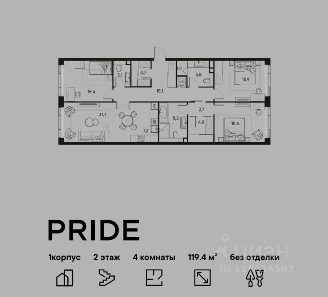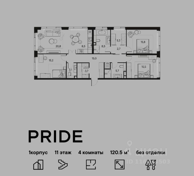 В премиальном жилом квартале PRIDE продается 4-комнатная квартира в 1 корпусе, на 11 этаже, в секции 4. Её общая площадь составляет 120.5 м². Пространство включает 3 уютные спальни 15,5 м², 15,8 м², 15,2 м², просторную кухню-гостиную 29,3 м² и ванную комнату 8,5 м². Ключи в 2026 году. Удобная локация: Жилой квартал расположен в 15 минутах от Цветного бульвара в историческом районе Марьина Роща. До любой точки города быстро и удобно добраться, как на общественном транспорте, так и на авто — комплекс находится всего в 3 минутах от ТТК и в пешей доступности от метро. Яркая архитектура с переменной высотностью от 7 до 22 этажей от именитого бюро APEX формирует запоминающийся облик проекта. Развитая инфраструктура: Территория квартала делится на несколько отдельных частей: открытый просторный бульвар 3500 м² для прогулок и два внутренних камерных двора. Внутри предусмотрены площадки для спорта, места для игр и тихие пространства для отдыха и неторопливого общения. Коммерческие и торговые помещения спроектированы на уровне первых этажей: супермаркеты, магазины, рестораны и кофейни, барбершоп, спа-салон и другие сервисные точки. Образовательный центр со школой на 257 учеников и детским садом на 112 мест на собственной территории квартал - идеальное решение для семей с детьми. Таким образом, внутренняя инфраструктура PRIDE обеспечит все базовые потребности будущих жителей. Благоустроенная территория: Ландшафтный дизайн с многоуровневым и замысловатым озеленением будет радовать жителей на протяжении всех сезонов — богатая флора дворов включает в себя несколько десятков видов растений. Лобби как в лучших отелях мира: На первых этажах резидентов и гостей встретят лобби с авторским дизайном от Sundukovy Sisters, бюро знаменито своими работами для отелей и ресторанов премиум-класса во всем мире. Надежный застройщик: Девелопер PIONEER — компания с 24-летней историей. В портфеле — 40 проектов жилой, коммерческой, социальной и многофункциональной недвижимости в Москве и Санкт-Петербурге. С 2001 года было реализовано 2,9 млн м². В настоящее время 1,6 млн м² находятся в стадии проектирования и строительства. Среди новых знаковых проектов девелопера — премиальные жилые кварталы и деловые объекты класса A.