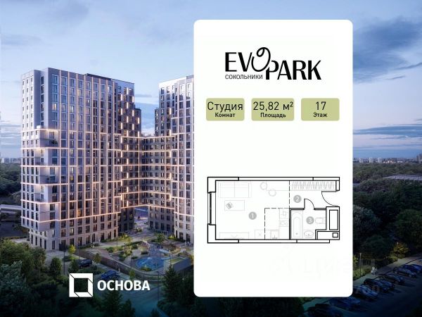 Продаются 1-к апартаменты площадью 37.52 кв.м. на 2-м этаже 20 этажного дома в EVOPARK Сокольники от ГК ОСНОВА. "EVOPARK Сокольники" расположен в историческом районе Преображенское, в 300 метрах от парка Сокольники. "EVOPARK Сокольники" расположен на набережной реки Яуза и находится в 15 минутах пешком от м. "Преображенская площадь". Быстрый выезд на главные транспортные магистрали (ТТК и ул. Стромынка) позволит добраться на личном авто до центра Москвы за полчаса. "EVOPARK Сокольники" - это два корпуса переменной этажности (максимально 20 этажей) с апартаментами бизнес-класса и подземным паркингом. В проект благоустройства входит двор с ландшафтным дизайном, который предусматривает зоны тихого отдыха, лестницу с амфитеатром, детские площадки и игровые площадки для детей разных возрастов, зеленые зоны отдыха. Для самых активных здесь оборудована work-out площадка. Два корпуса соединены между собой аркой с видом на парк Сокольники. На уровне 13-18 этажей располагаются видовые террасы с ограждениями из безопасного стекла, где можно насладиться шикарными видами на парк Сокольники и самыми красивыми закатами.