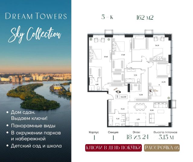 Рассрочка 0% от застройщика. Ключи в день покупки. ЖК Dream Towers — проект премиум-класса в окружении парков и набережной, с полностью готовой инфраструктурой для комфортной жизни и отдыха. Продаётся 2-квартира на 17 этаже 24-этажного дома (1 корпус). Общая площадь: 58.3 кв.м. Высота потолков от 3.15 м. Город-курорт на 100 Га в шаге от вашего дома: • пляжный комплекс Dream Beach Club; • парк аттракционов Остров Мечты; • 44 Га ландшафтных парков; • пешеходная набережная; • яхт-клуб; • Южный речной вокзал; • вейк-парк и многое другое. В Dream Towers предусмотрено все для комфортной жизни с семьей: • дизайнерские лобби с общественной гостиной, колясочной и лапомойками; • охраняемый благоустроенной двор только для жителей; • собственный десткий сад и школа прямо во дворе; • красивая архитектура зданий в стиле Ар-деко; • облицовка фасадов из натурального камня с архитектурной подсветкой; • широкоформатное остекление окон в пол для лучших видовых характеристик на парки и пойму Москвы-реки; • подземный паркинг; • клубный формат проживания; • эргономичные планировки от 40 до 162 м2; • высокие потолки от 3,15 до 4,1 м; • квартиры с террасами; • вся необходимая инфраструктура на первых этажах домов, а также в торговой частия тематического парка "Остров Мечты" (рестораны, кафе, супермаркет, магазины, салон красоты, йога-студия и многое другое). Центр рядом: 15 минут до Садового кольца на авто, 20 минут до Сити или Кремля. В 5 минутах прогулочным шагом — станция метро "Технопарк"
