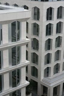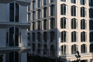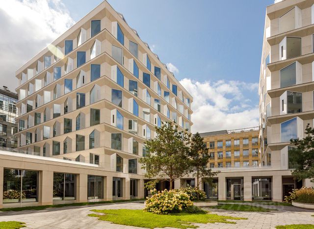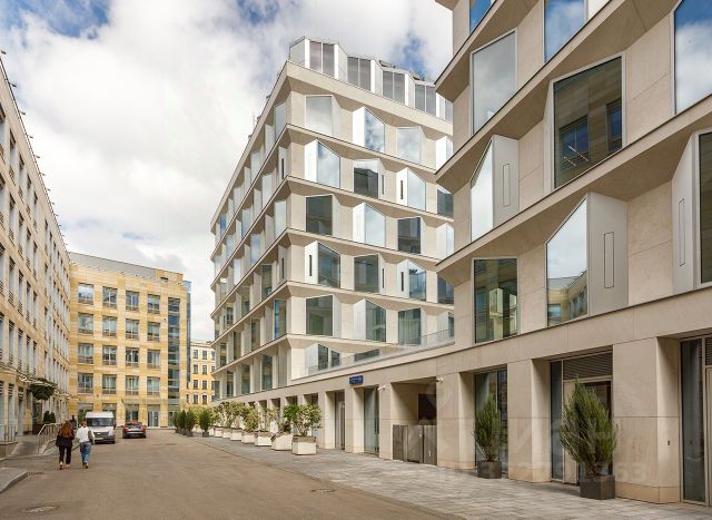 Пять особняков разной этажности составляют пространство комплекса. Фасады домов выполнены из натурального камня, а металлическая отделка окон создает контраст и ритм экстерьера. Современная архитектура элегантно вписана в дизайн-код окружающего района.