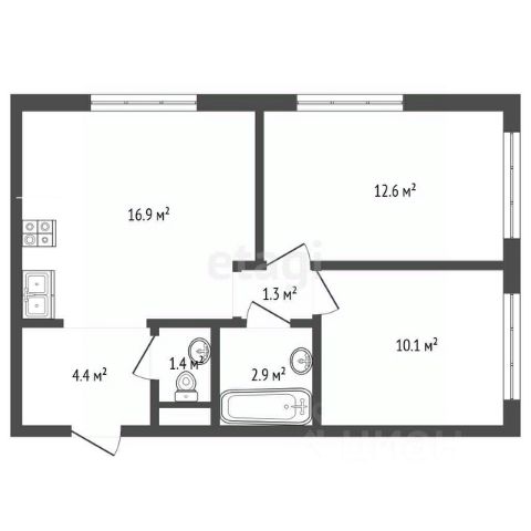 Квартира расположена на 5 этаже 12-ти этажного монолитно-кирпичного дома 2025 года постройки. Общая площадь квартиры 53,7 м2 (с лоджией 54,5 м2), жилая площадь 29 (15,5/13,5) м2, кухня-столовая 12,5 м2, из кухни выходит застекленная лоджия, СУ раздельный, имеется ниша под гардероб. Планировка изолированная.