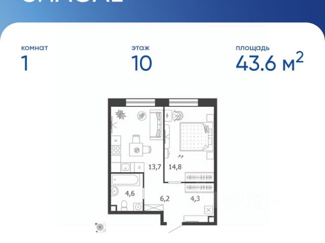 Продается 1-к квартира без отделки в ЖК "Shagal". Общая площадь квартиры — 43.6 кв. м, этаж 10 из 18. Тип дома — монолитный. Цена указана при 100% оплате. Квартал Shagal — крупнейший проект комплексного освоения в Москве. В проекте реализуется продуманная система маршрутов. Еда, покупки, услуги, прогулки, спорт, образование, работа и развлечения — все будет находиться рядом с домом: принцип 15-минутной доступности инфраструктуры и сервисов. Разнообразие и продуманность пешеходных маршрутов, а также короткие расстояния между основными точками притяжения мотивируют резидентов Shagal с удовольствием передвигаться по району пешком, не выпадая из ритма большого города. Продуманная транспортная сеть района и безопасный скоростной режим создают комфортные условия для перемещений любым способом: на автобусе, машине, самокате или велосипеде. Не нужно выезжать из района, чтобы получить комфорт и сервис самого высокого современного стандарта: все необходимые услуги, инфраструктура, парки и вторая по протяженности набережная в городе — на расстоянии 15-минутной прогулки от вашего дома. Квартал Shagal станет первым в Москве жилым районом, где будут комплексно реализованы инновационные подходы в проектировании и строительстве зданий. Архитектурная композиция состоит из домов отличающегося типа. Высотные башни-доминанты с видовыми квартирами, дома пониже, растворяющиеся в спокойствии внутренних двориков, малоэтажные камерные таунхаусы и разноэтажные дома с лоджиями на первой береговой линии соединяются в одно эстетичное современное произведение. В результате создаётся насыщенное идентичное пространство, подчёркнутое плавностью природных форм, наполненное светом, воздухом и свободой.